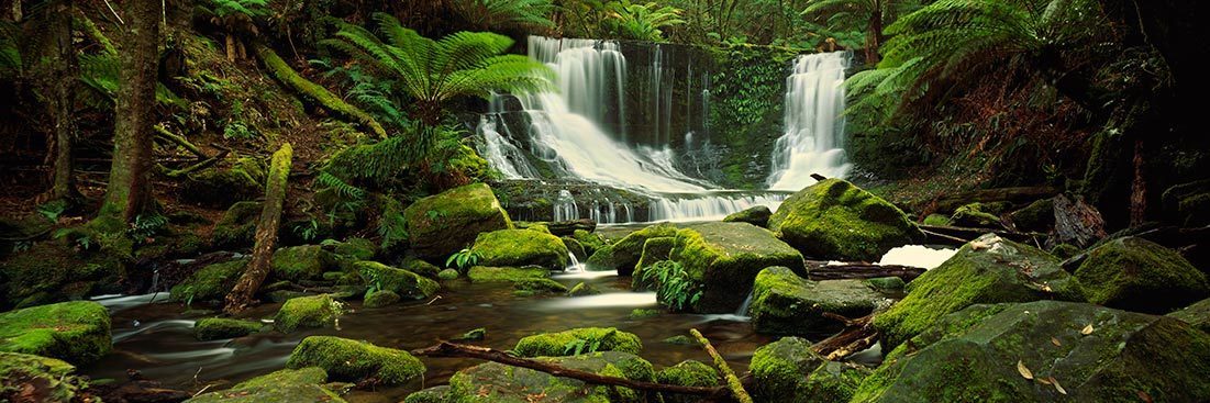 Horseshoe Falls, a peaceful little oasis located just up the mountain from the ever-famous Russell Falls, is just such a place. The spectacle of two gently rumbling waterfalls is offset perfectly by a multitude of velvety, moss-covered rocks. An ice cold stream meanders gracefully between them, like a ribbon snaking its way through a lady’s hair. Lush, tropical ferns frame the scene with their delicate, graceful fronds and fill the air with a heady, grassy fragrance – the perfect finishing touch to a scene that almost seemed to beautiful to be real.