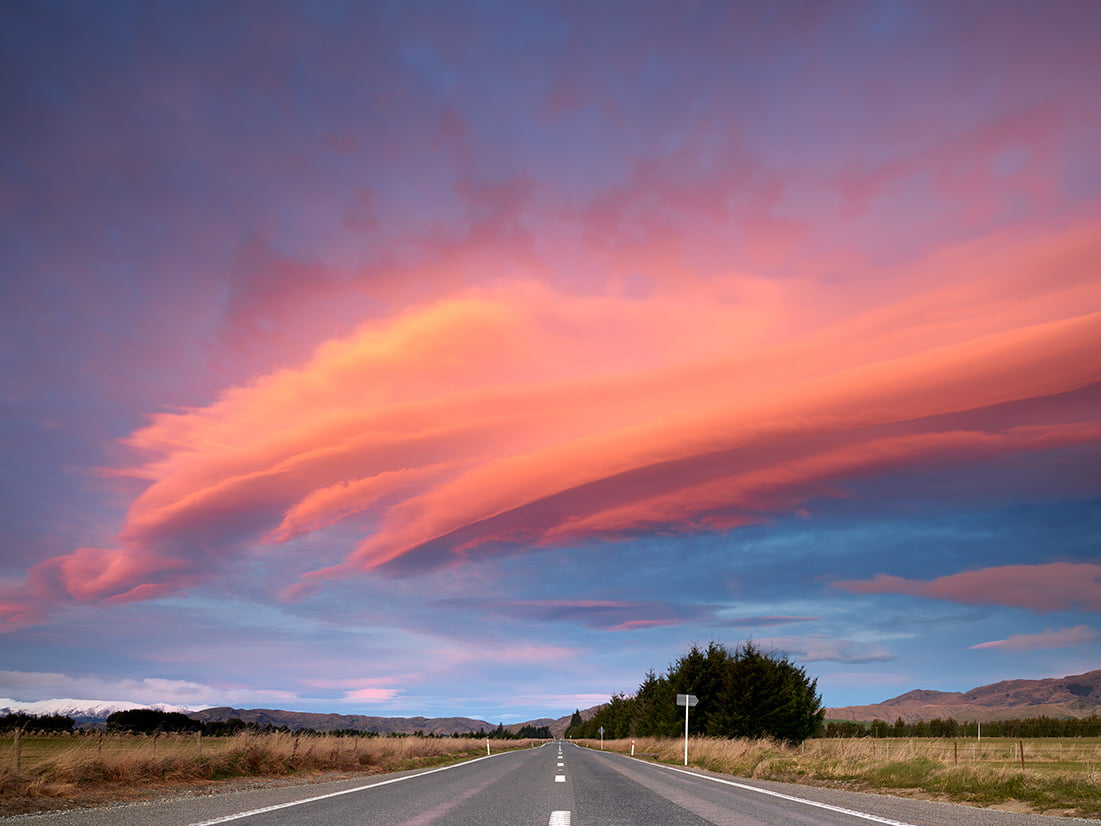 Window to the Sky captures a moment exactly like that. I was visiting New Zealand’s South Island with a mind to make some photography magic happen, but nothing I tried had panned out that day. I’d just made up my mind to throw in the towel and head back to Queenstown when this spectacular group of lenticular clouds started picking up an incredible rainbow of color from the setting sun.